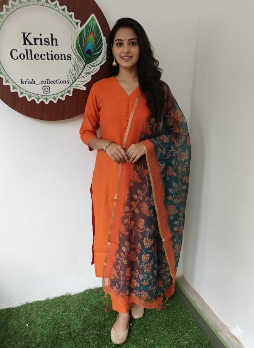 VARTICAN SILK KURTI WITH KALAMKARI DUPPATTA --BA19