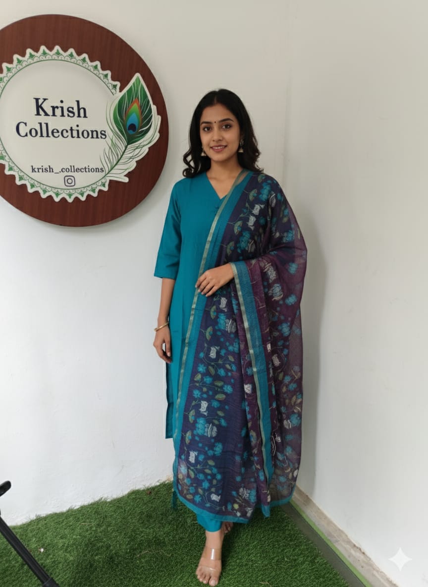 Design: Plain Vatican Silk Kurti with Kalamkari Kota Inspired Dupatta