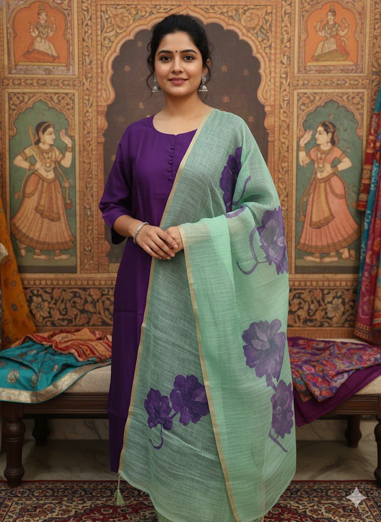 Design: Plain Vatican Silk Kurti with Kalamkari Kota Inspired Dupatta