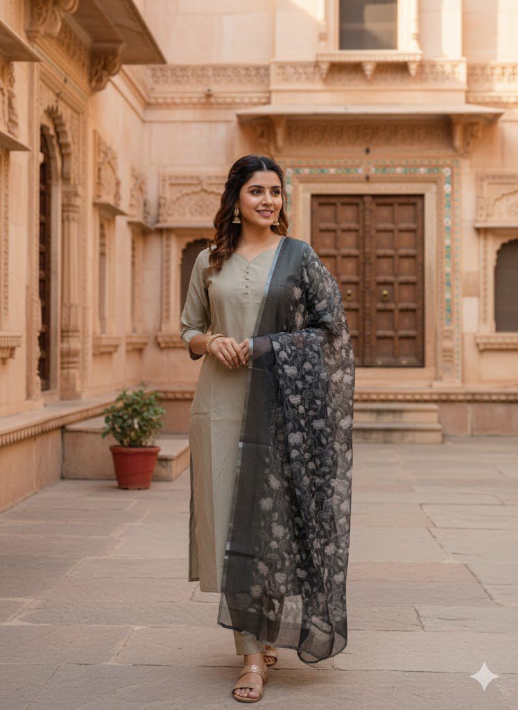Design: Plain Vatican Silk Kurti with Kalamkari Kota Inspired Dupatta