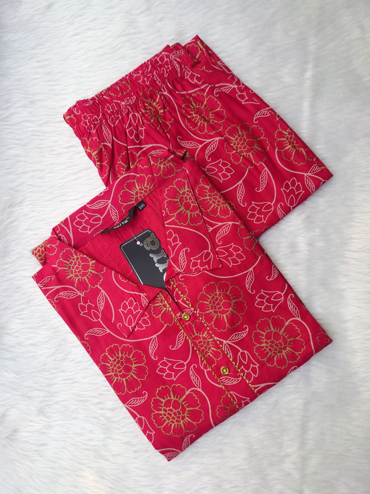 Stay effortlessly stylish in this elegant olive green floral cotton kurti set. Designed for both comfort and grace, this outfit features a subtle beige floral print that adds a touch of charm. The collared neckline with button detailing gives it a smart, contemporary appeal β€” perfect for everyday wear, office, or casual outings.