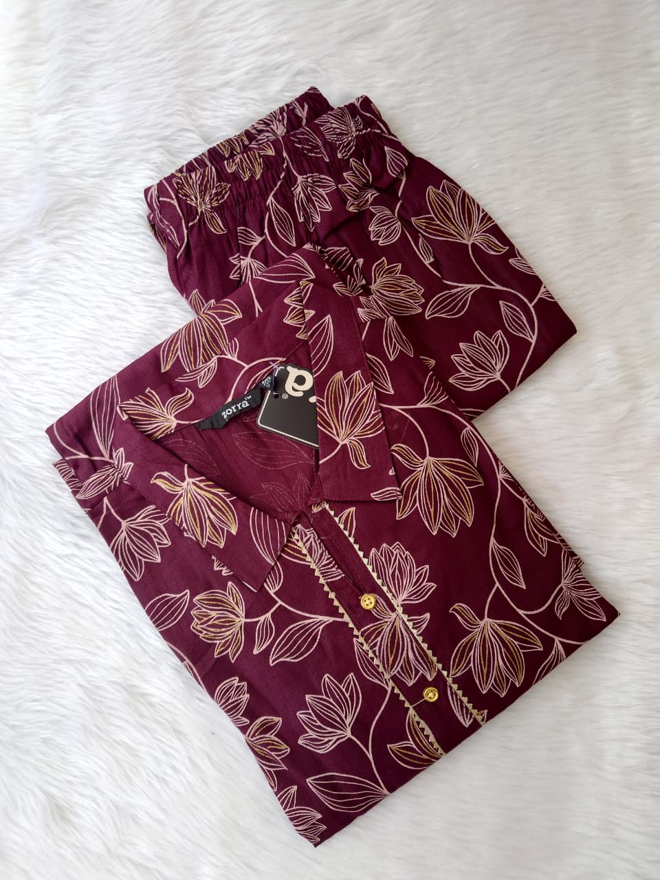 Stay effortlessly stylish in this elegant olive green floral cotton kurti set. Designed for both comfort and grace, this outfit features a subtle beige floral print that adds a touch of charm. The collared neckline with button detailing gives it a smart, contemporary appeal β€” perfect for everyday wear, office, or casual outings.