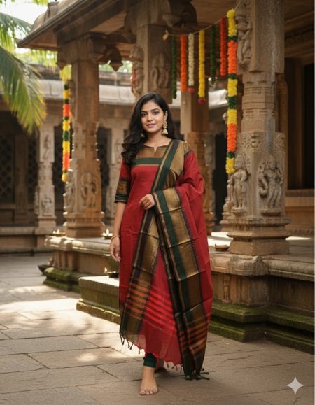 KANCHI COTTON KURTI WITH DUPPATTA-KC30