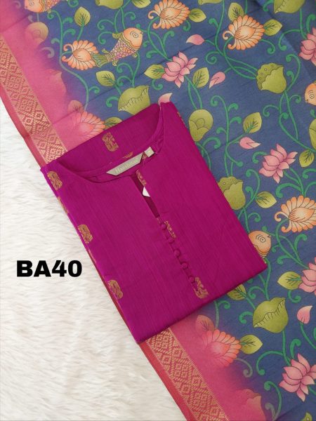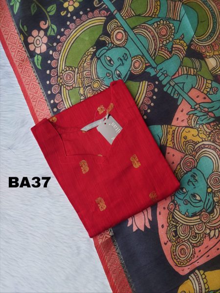 RAW SILK KURTI WITH KALAMKARI DUPPATTA -BA27