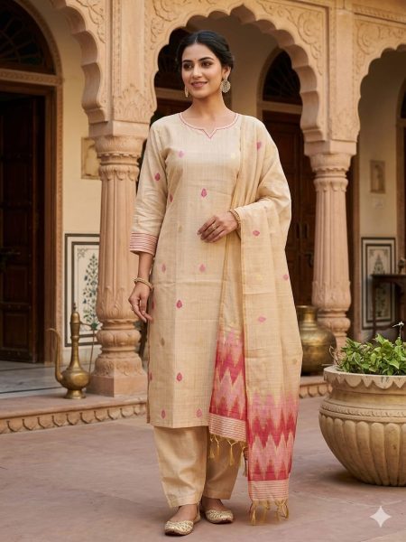 Elegant Jamdhani Silk Cotton Suit Set ✨